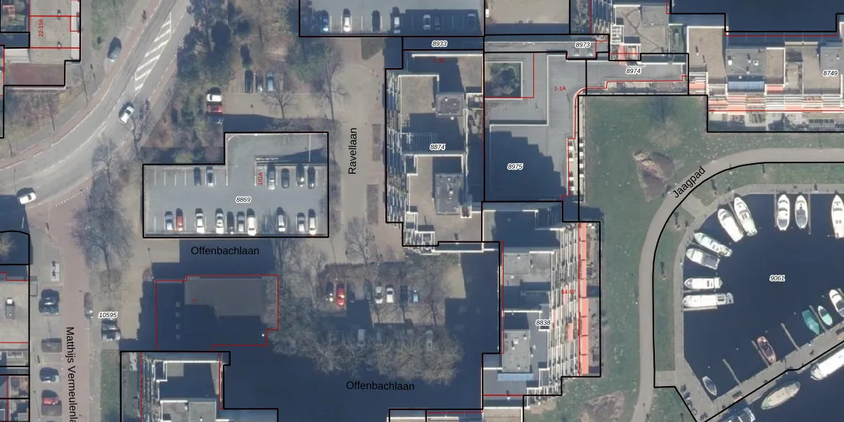 Het perceel waarop Ravellaan 9 staat heeft een oppervlakte van 1019 m². Dit is een zeer groot perceel. De perceeloppervlakte wordt geregistreerd door het Kadaster. Gedetailleerde informatie over de maten van dit perceel kunt u vinden in het rapport Kadastrale kaart met maatvoering van Ravellaan 9.