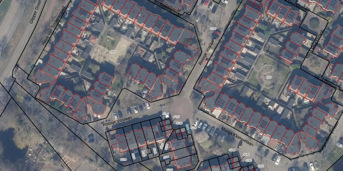 Het perceel waarop Roosje Voslaan 26 staat heeft een oppervlakte van 5430 m². Dit is een zeer groot perceel. De perceeloppervlakte wordt geregistreerd door het Kadaster. Gedetailleerde informatie over de maten van dit perceel kunt u vinden in het rapport Kadastrale kaart met maatvoering van Roosje Voslaan 26.