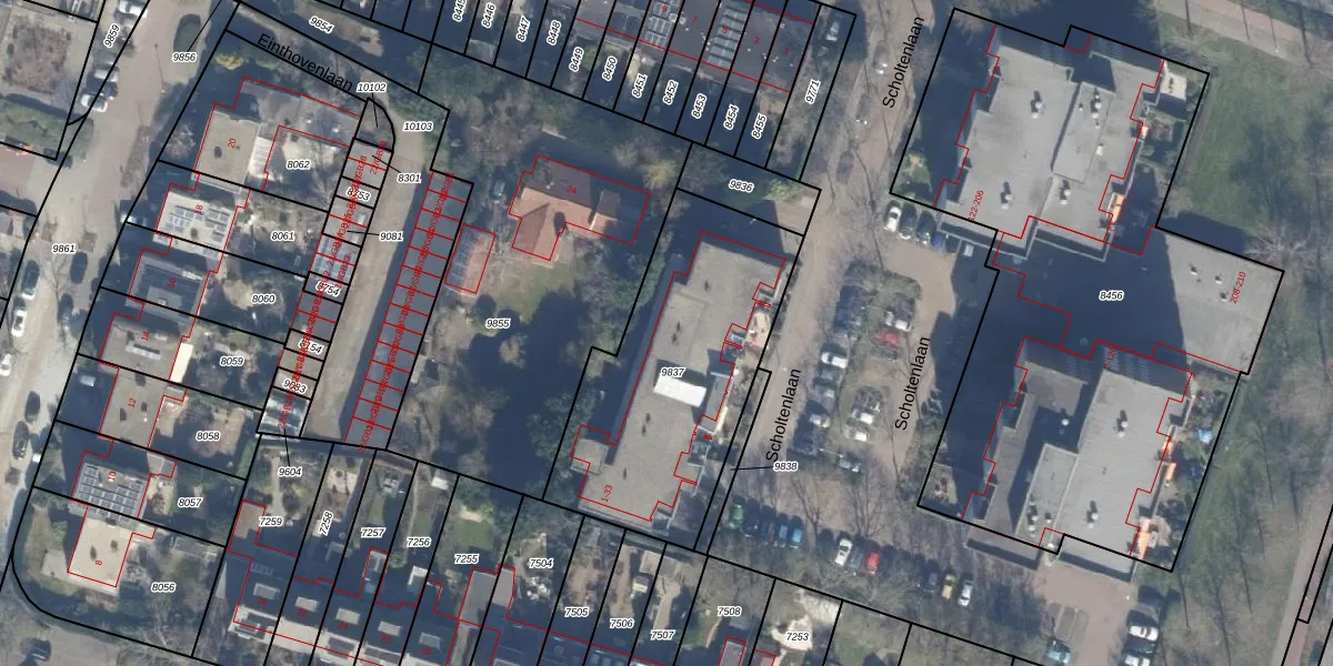Scholtenlaan 23 is gelegen op kadastraal perceel HSD01B9837. Deze kadastrale aanduiding is uniek en wordt gebruikt door het Kadaster om eigendomsrechten en andere zakelijke rechten vast te leggen. Het perceel maakt onderdeel uit van de kadastrale gemeente Heemstede.