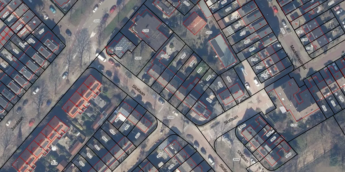 Gebruik de zoekbalk of klik op een perceel voor informatie over de adressen binnen dit perceel.