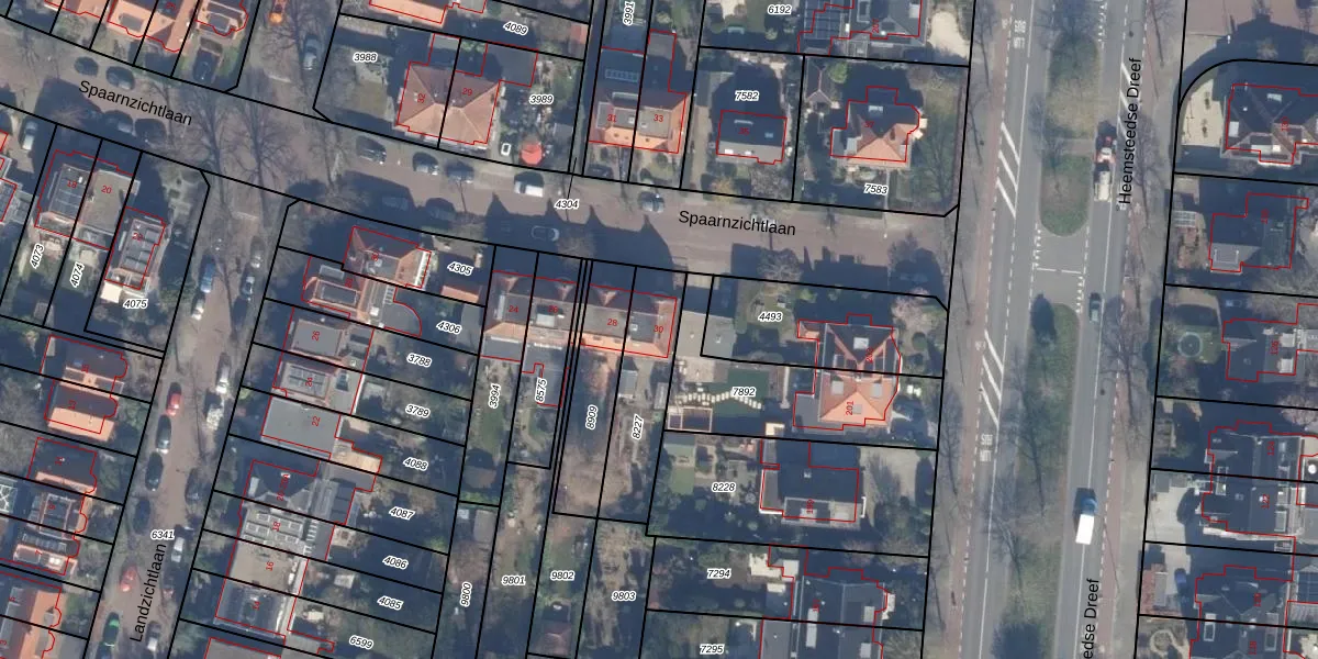 Gebruik de zoekbalk of klik op een perceel voor informatie over de adressen binnen dit perceel.