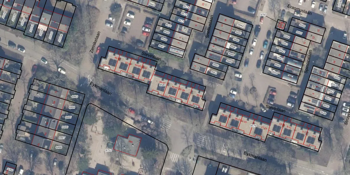 Het perceel waarop Stevinlaan 41 staat heeft een oppervlakte van 830 m². Dit is een groot perceel. De perceeloppervlakte wordt geregistreerd door het Kadaster. Gedetailleerde informatie over de maten van dit perceel kunt u vinden in het rapport Kadastrale kaart met maatvoering van Stevinlaan 41.