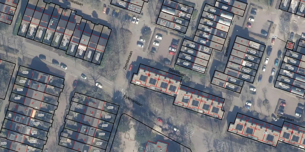 Stevinlaan 59 is gelegen op kadastraal perceel HSD01B8580. Deze kadastrale aanduiding is uniek en wordt gebruikt door het Kadaster om eigendomsrechten en andere zakelijke rechten vast te leggen. Het perceel maakt onderdeel uit van de kadastrale gemeente Heemstede.