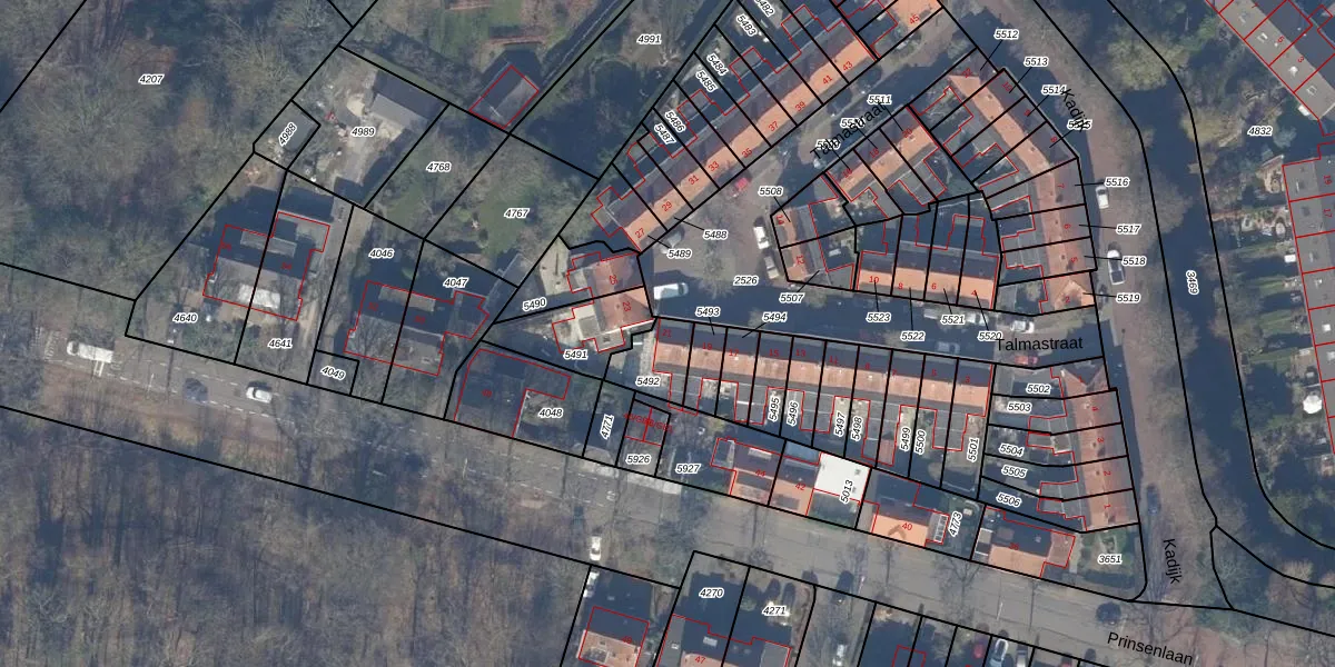 Talmastraat 21 is gelegen op kadastraal perceel HSD01C5492. Deze kadastrale aanduiding is uniek en wordt gebruikt door het Kadaster om eigendomsrechten en andere zakelijke rechten vast te leggen. Het perceel maakt onderdeel uit van de kadastrale gemeente Heemstede.
