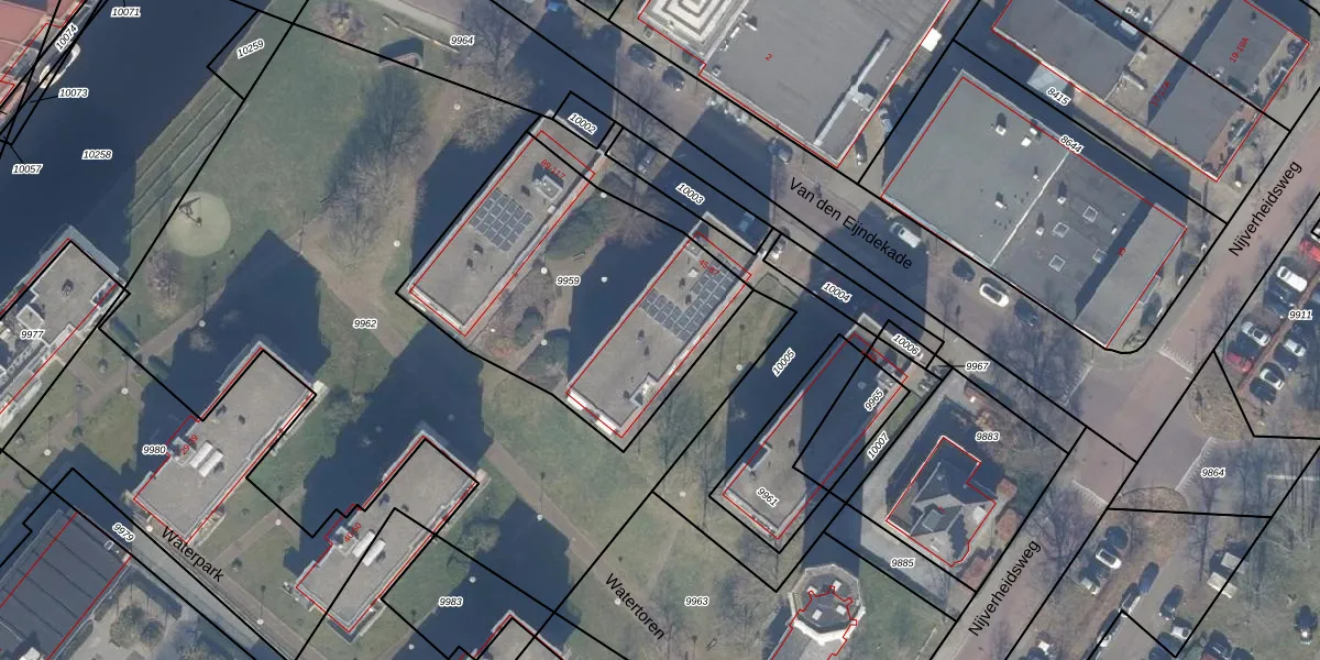 Het perceel waarop Van den Eijndekade 65 staat heeft een oppervlakte van 1309 m². Dit is een zeer groot perceel. De perceeloppervlakte wordt geregistreerd door het Kadaster. Gedetailleerde informatie over de maten van dit perceel kunt u vinden in het rapport Kadastrale kaart met maatvoering van Van den Eijndekade 65.