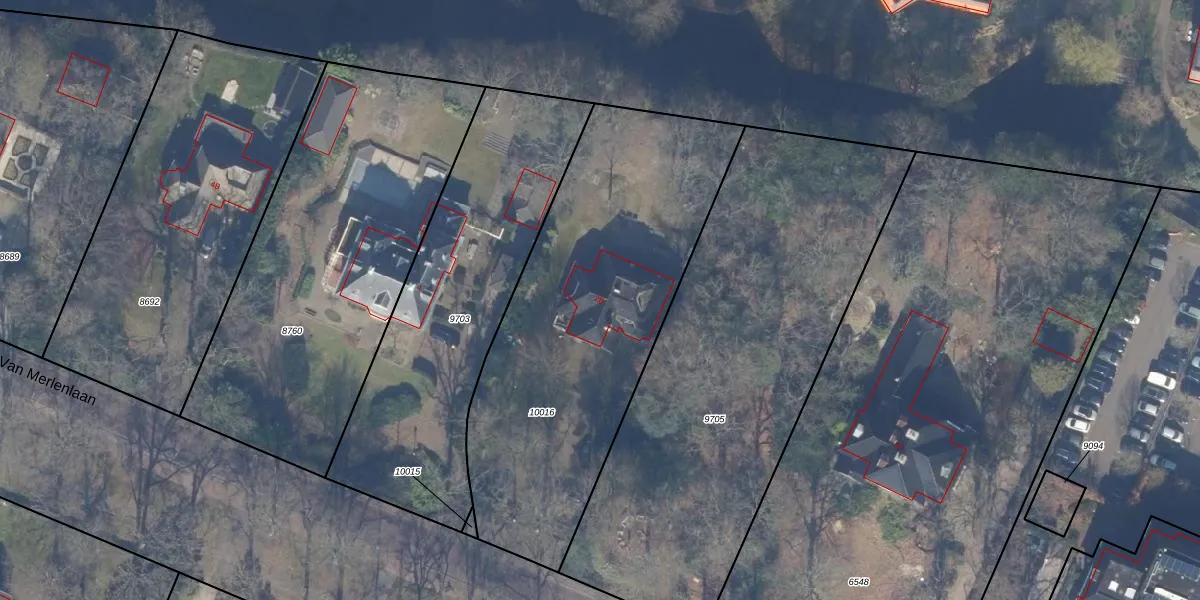 Van Merlenlaan 2-B is gelegen op kadastraal perceel HSD01B10016. Deze kadastrale aanduiding is uniek en wordt gebruikt door het Kadaster om eigendomsrechten en andere zakelijke rechten vast te leggen. Het perceel maakt onderdeel uit van de kadastrale gemeente Heemstede.