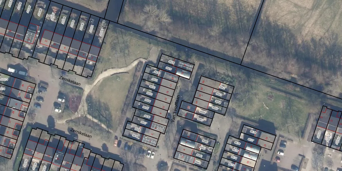 Het perceel waarop Van 't Hofflaan 17 staat heeft een oppervlakte van 87 m². Dit is een klein perceel. De perceeloppervlakte wordt geregistreerd door het Kadaster. Gedetailleerde informatie over de maten van dit perceel kunt u vinden in het rapport Kadastrale kaart met maatvoering van Van 't Hofflaan 17.