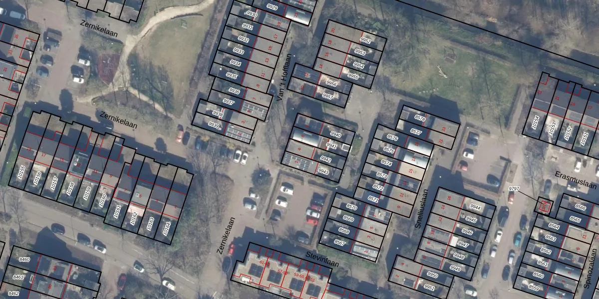 Gebruik de zoekbalk of klik op een perceel voor informatie over de adressen binnen dit perceel.