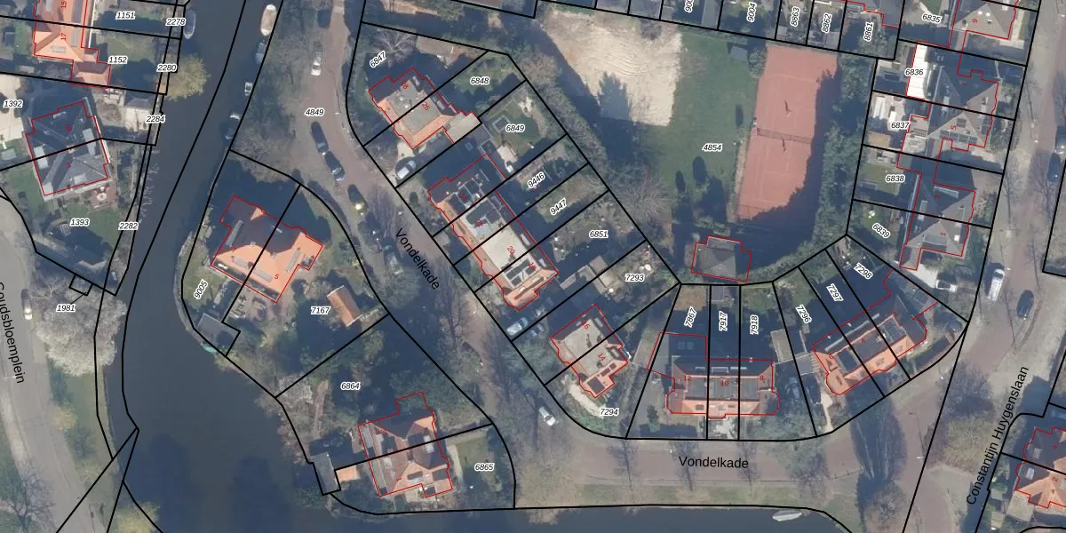 Het perceel waarop Vondelkade 18 staat heeft een oppervlakte van 368 m². Dit is een groot perceel. De perceeloppervlakte wordt geregistreerd door het Kadaster. Gedetailleerde informatie over de maten van dit perceel kunt u vinden in het rapport Kadastrale kaart met maatvoering van Vondelkade 18.