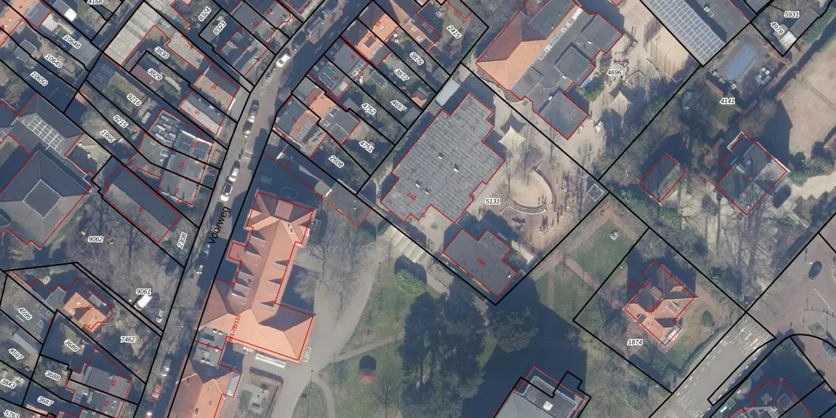 Het perceel waarop Voorweg 24-B staat heeft een oppervlakte van 1775 m². Dit is een zeer groot perceel. De perceeloppervlakte wordt geregistreerd door het Kadaster. Gedetailleerde informatie over de maten van dit perceel kunt u vinden in het rapport Kadastrale kaart met maatvoering van Voorweg 24-B.