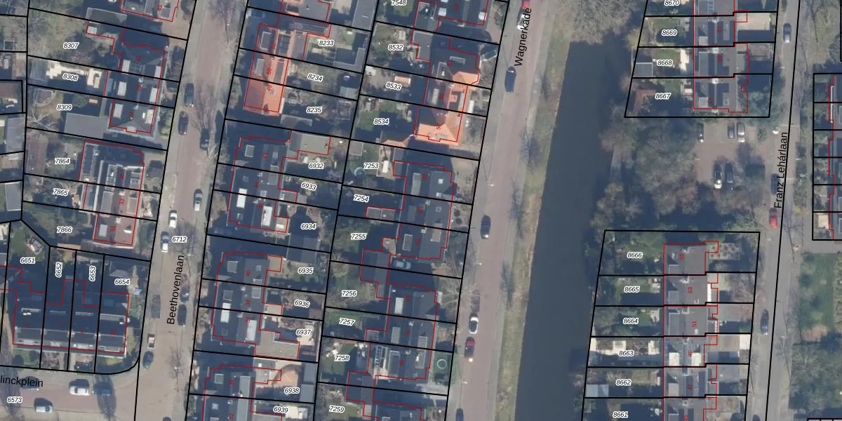 Gebruik de zoekbalk of klik op een perceel voor informatie over de adressen binnen dit perceel.