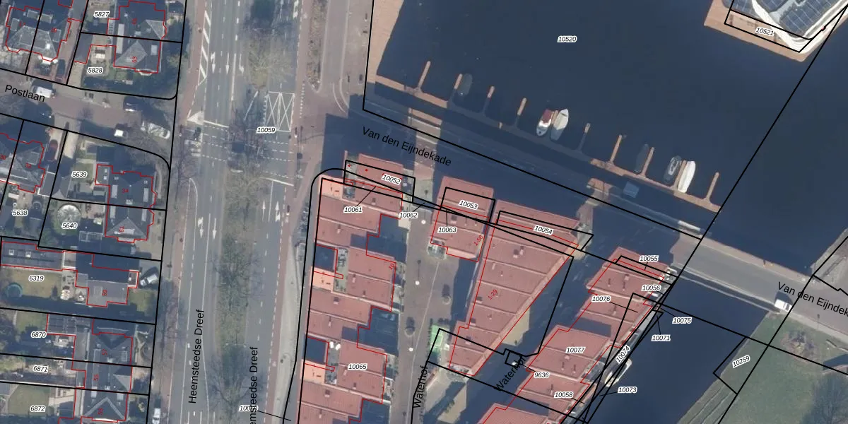 Waterhof 1 is gelegen op kadastraal perceel HSD01A10065. Deze kadastrale aanduiding is uniek en wordt gebruikt door het Kadaster om eigendomsrechten en andere zakelijke rechten vast te leggen. Het perceel maakt onderdeel uit van de kadastrale gemeente Heemstede.