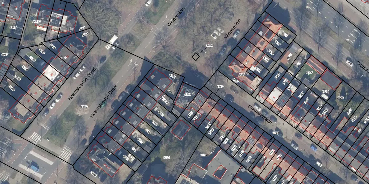 Gebruik de zoekbalk of klik op een perceel voor informatie over de adressen binnen dit perceel.