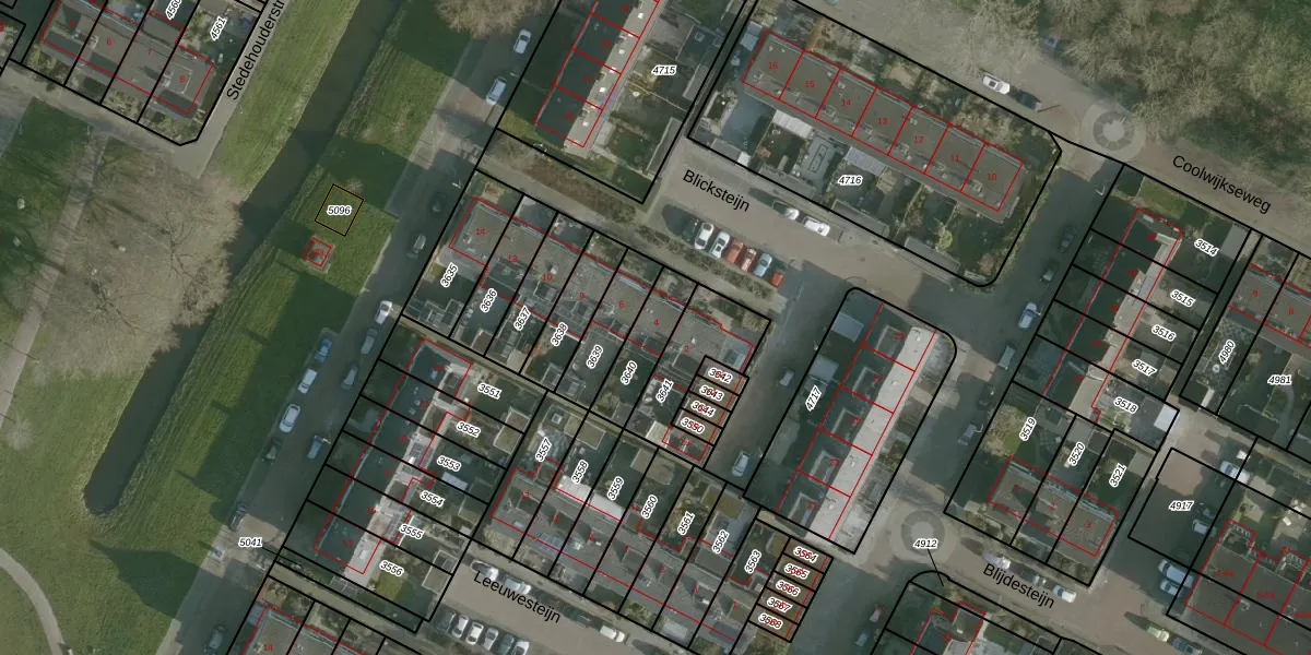 Gebruik de zoekbalk of klik op een perceel voor informatie over de adressen binnen dit perceel.