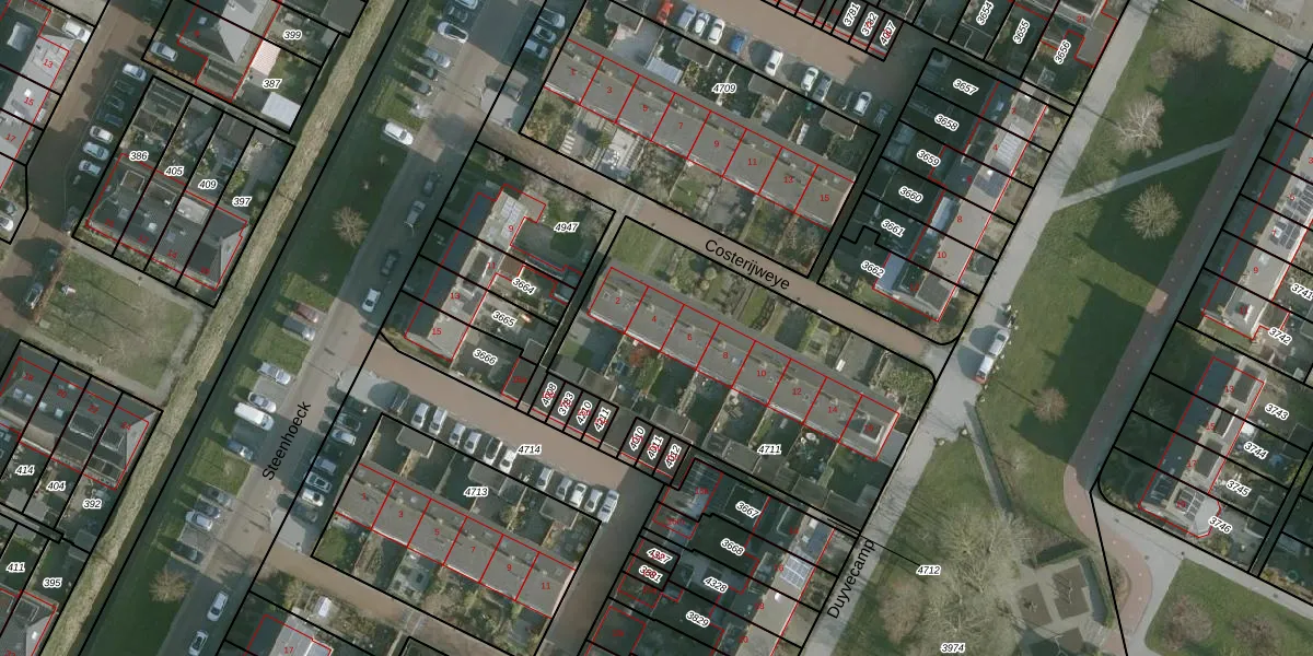 Costerijweye 4 is gelegen op kadastraal perceel HVT04B4711. Deze kadastrale aanduiding is uniek en wordt gebruikt door het Kadaster om eigendomsrechten en andere zakelijke rechten vast te leggen. Het perceel maakt onderdeel uit van de kadastrale gemeente Heenvliet.