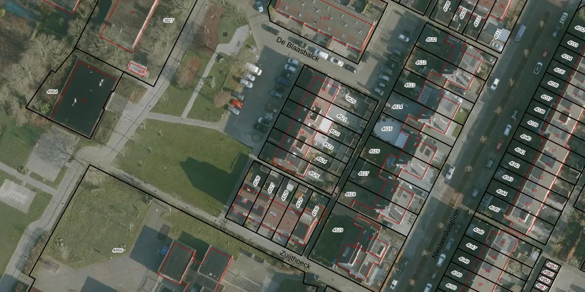 Gebruik de zoekbalk of klik op een perceel voor informatie over de adressen binnen dit perceel.