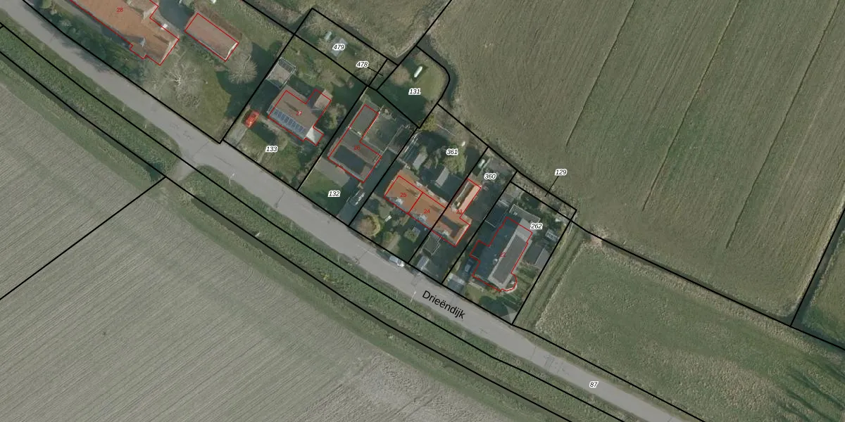 Drieëndijk 24 is gelegen op kadastraal perceel BNS04E361. Deze kadastrale aanduiding is uniek en wordt gebruikt door het Kadaster om eigendomsrechten en andere zakelijke rechten vast te leggen. Het perceel maakt onderdeel uit van de kadastrale gemeente Bernisse.