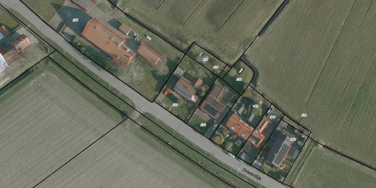 Het perceel waarop Drieëndijk 27 staat heeft een oppervlakte van 645 m². Dit is een groot perceel. De perceeloppervlakte wordt geregistreerd door het Kadaster. Gedetailleerde informatie over de maten van dit perceel kunt u vinden in het rapport Kadastrale kaart met maatvoering van Drieëndijk 27.
