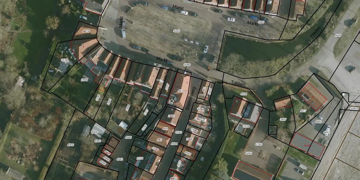 Het perceel waarop Markt 1 staat heeft een oppervlakte van 178 m². Dit is een middelgroot perceel. De perceeloppervlakte wordt geregistreerd door het Kadaster. Gedetailleerde informatie over de maten van dit perceel kunt u vinden in het rapport Kadastrale kaart met maatvoering van Markt 1.