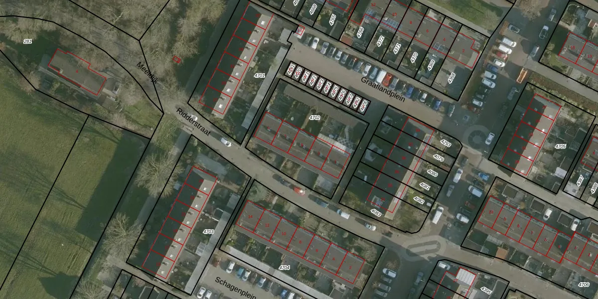 Ridderstraat 5 is gelegen op kadastraal perceel HVT04B4702. Deze kadastrale aanduiding is uniek en wordt gebruikt door het Kadaster om eigendomsrechten en andere zakelijke rechten vast te leggen. Het perceel maakt onderdeel uit van de kadastrale gemeente Heenvliet.
