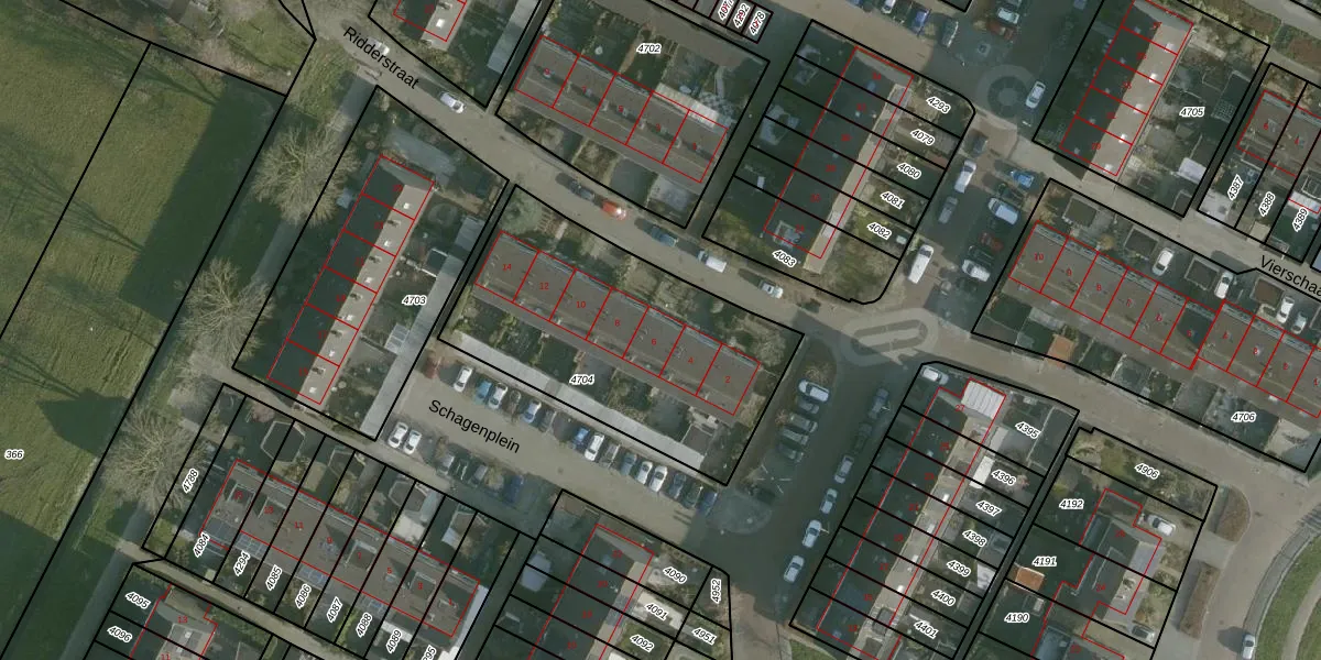 Ridderstraat 6 is gelegen op kadastraal perceel HVT04B4704. Deze kadastrale aanduiding is uniek en wordt gebruikt door het Kadaster om eigendomsrechten en andere zakelijke rechten vast te leggen. Het perceel maakt onderdeel uit van de kadastrale gemeente Heenvliet.
