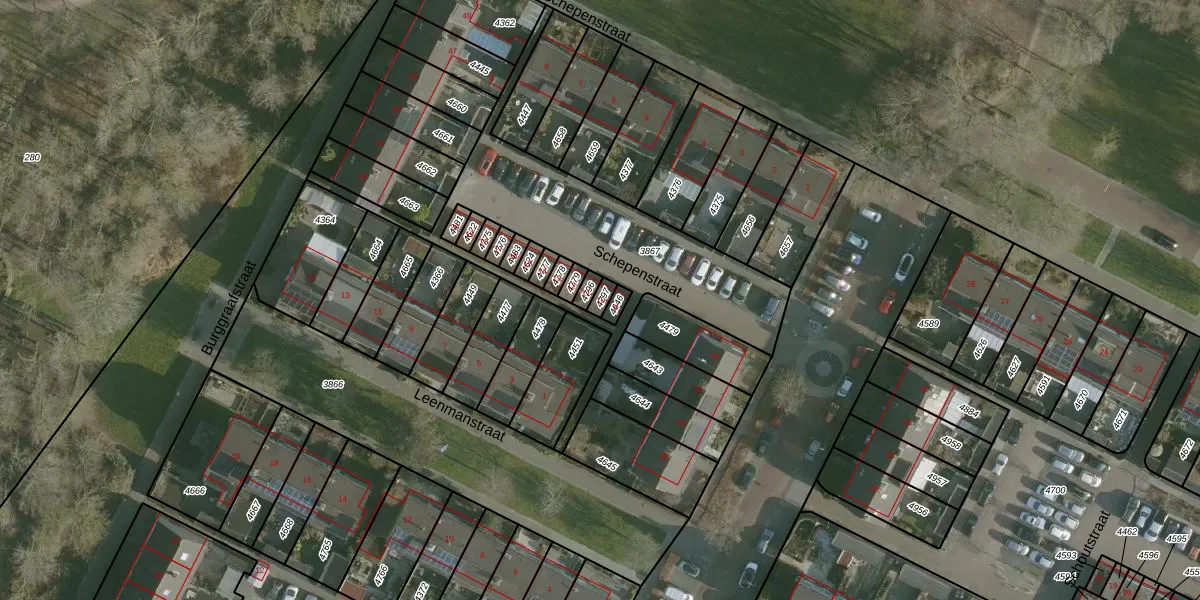 Het perceel waarop Schepenstraat 10 staat heeft een oppervlakte van 17 m². Dit is een klein perceel. De perceeloppervlakte wordt geregistreerd door het Kadaster. Gedetailleerde informatie over de maten van dit perceel kunt u vinden in het rapport Kadastrale kaart met maatvoering van Schepenstraat 10.