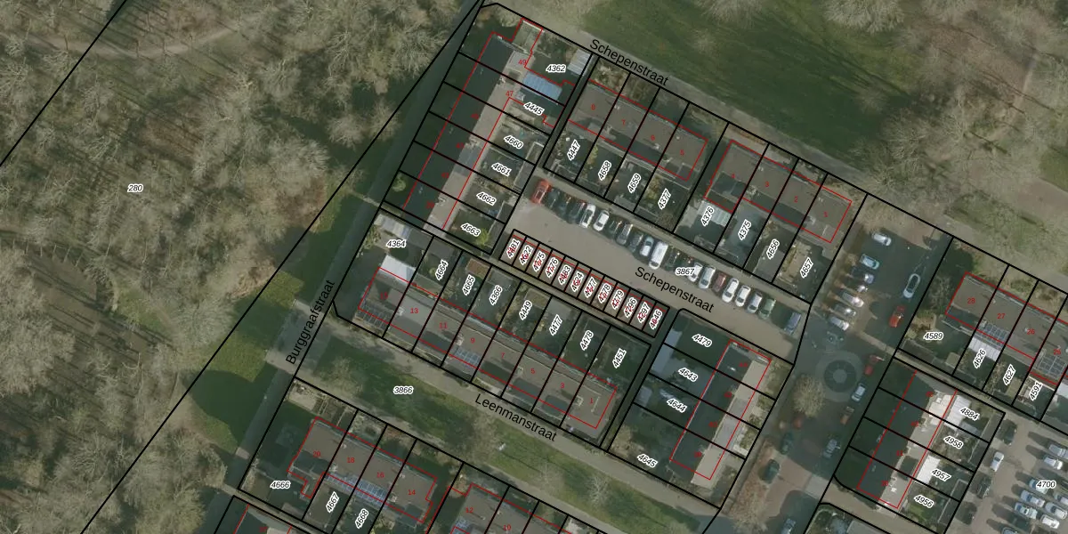 Het perceel waarop Schepenstraat 18 staat heeft een oppervlakte van 17 m². Dit is een klein perceel. De perceeloppervlakte wordt geregistreerd door het Kadaster. Gedetailleerde informatie over de maten van dit perceel kunt u vinden in het rapport Kadastrale kaart met maatvoering van Schepenstraat 18.
