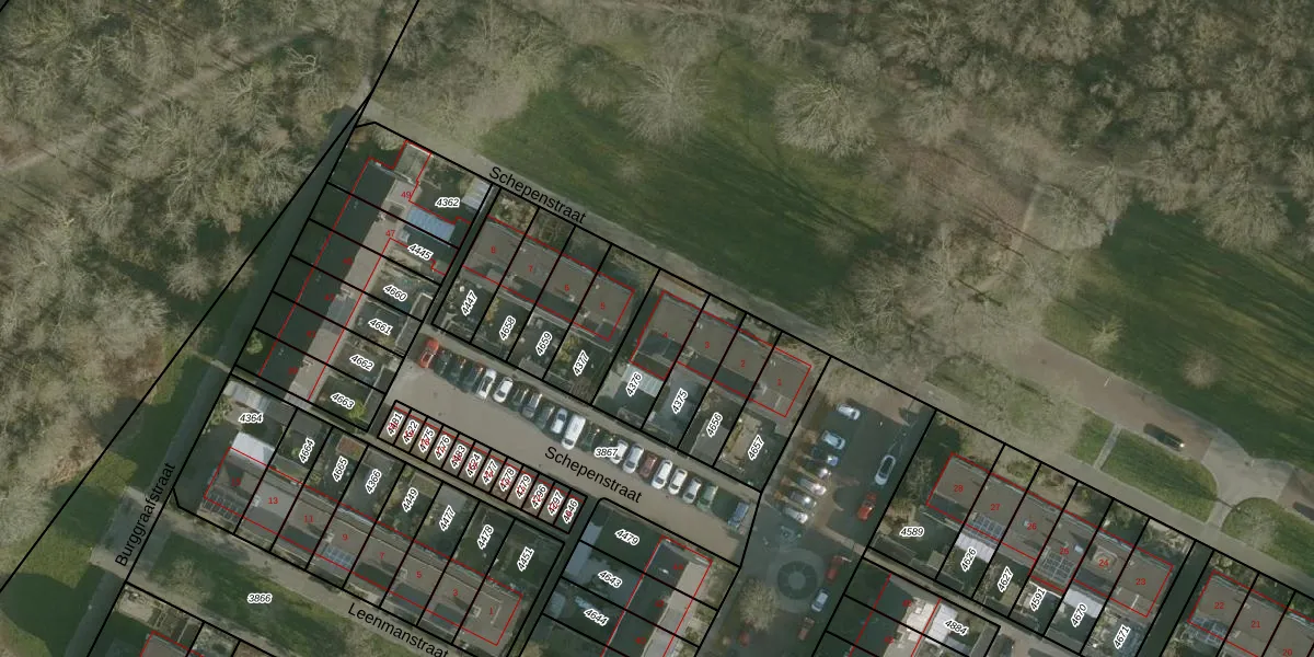 Gebruik de zoekbalk of klik op een perceel voor informatie over de adressen binnen dit perceel.