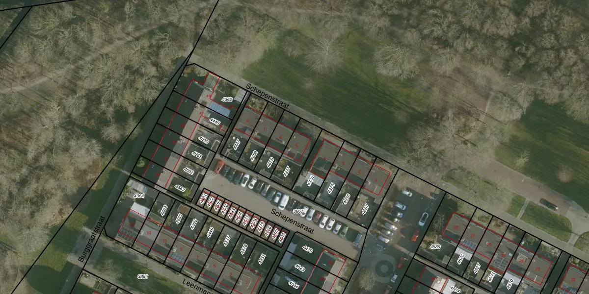 Het perceel waarop Schepenstraat 5 staat heeft een oppervlakte van 198 m². Dit is een middelgroot perceel. De perceeloppervlakte wordt geregistreerd door het Kadaster. Gedetailleerde informatie over de maten van dit perceel kunt u vinden in het rapport Kadastrale kaart met maatvoering van Schepenstraat 5.