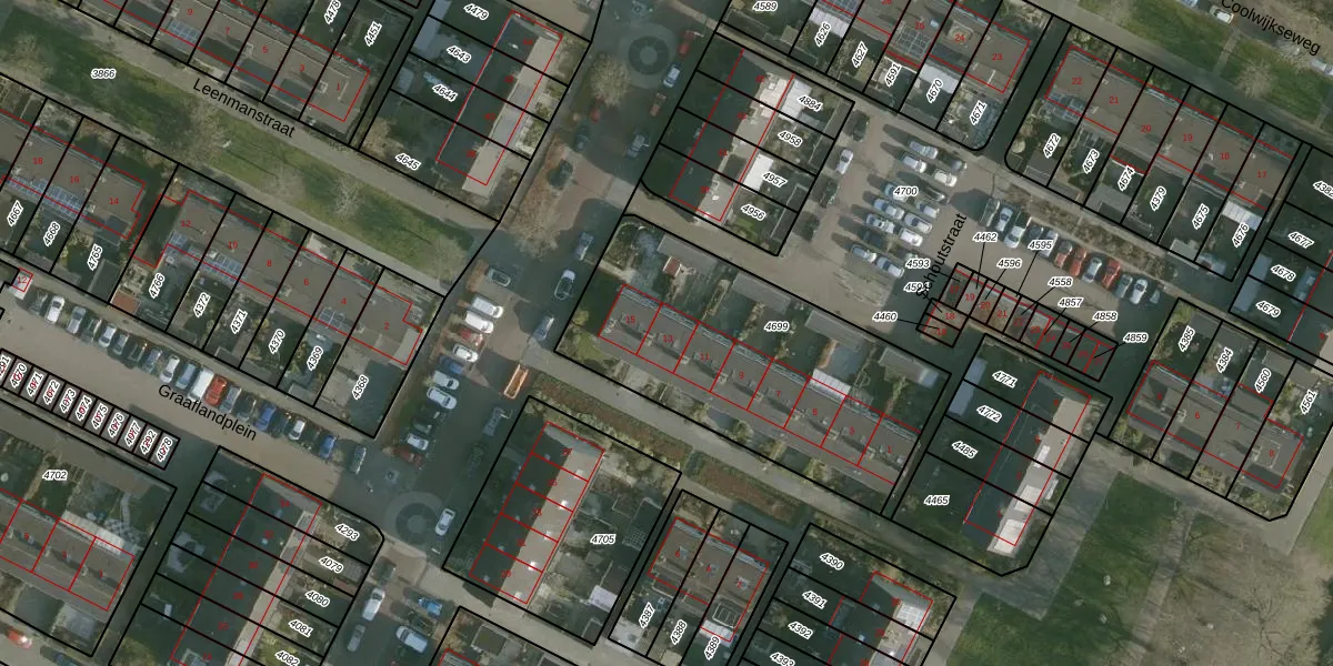 Het adres ligt op het perceel HVT04-B-4699, dat zich in de kadastrale gemeente Heenvliet bevindt. Het perceel is met 1297 m² relatief groot. Het gemiddelde ligt in de kadastrale gemeente Heenvliet op 487,77 m². De grootste perceeloppervlakte in de kadastrale gemeente is 7,7 ha. De kleinste oppervlakte bedraagt 1 m². Er zijn 8 adressen aanwezig op het perceel. In de Basisregistratie Kadaster (BRK) werden de grenzen van het perceel geregistreerd op 11-06-2009.
