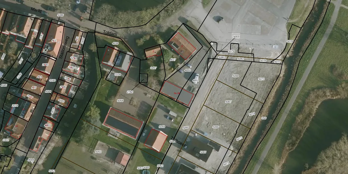 Het perceel waarop Toldam 3-a staat heeft een oppervlakte van 335 m². Dit is een groot perceel. De perceeloppervlakte wordt geregistreerd door het Kadaster. Gedetailleerde informatie over de maten van dit perceel kunt u vinden in het rapport Kadastrale kaart met maatvoering van Toldam 3-a.