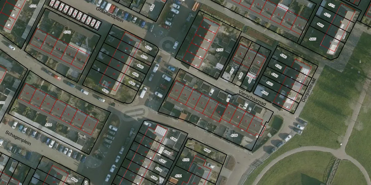 Vierschaarpad 9 is gelegen op kadastraal perceel HVT04B4706. Deze kadastrale aanduiding is uniek en wordt gebruikt door het Kadaster om eigendomsrechten en andere zakelijke rechten vast te leggen. Het perceel maakt onderdeel uit van de kadastrale gemeente Heenvliet.
