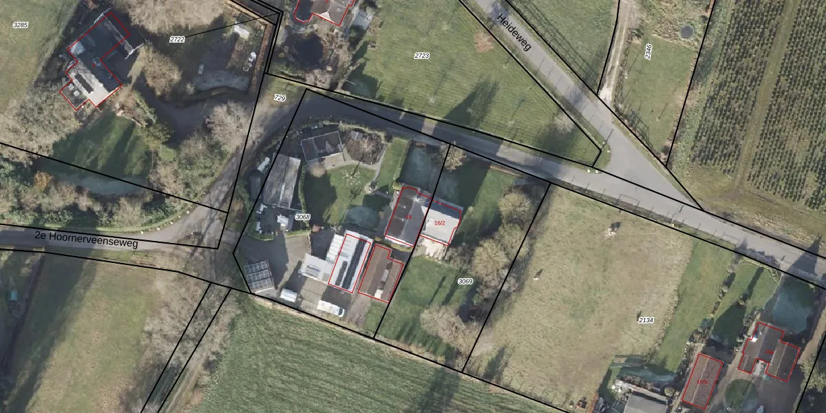 2e Hoornerveenseweg 16 is gelegen op kadastraal perceel HDE00A3068. Deze kadastrale aanduiding is uniek en wordt gebruikt door het Kadaster om eigendomsrechten en andere zakelijke rechten vast te leggen. Het perceel maakt onderdeel uit van de kadastrale gemeente Heerde.