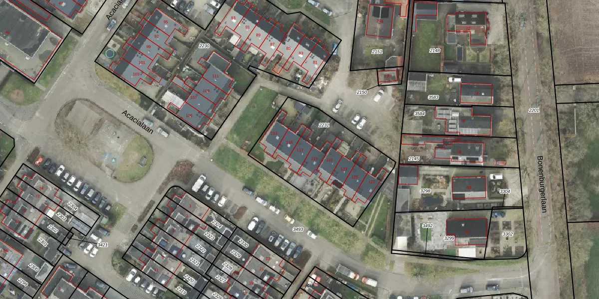 Het perceel waarop Acacialaan 117 staat heeft een oppervlakte van 1090 m². Dit is een zeer groot perceel. De perceeloppervlakte wordt geregistreerd door het Kadaster. Gedetailleerde informatie over de maten van dit perceel kunt u vinden in het rapport Kadastrale kaart met maatvoering van Acacialaan 117.