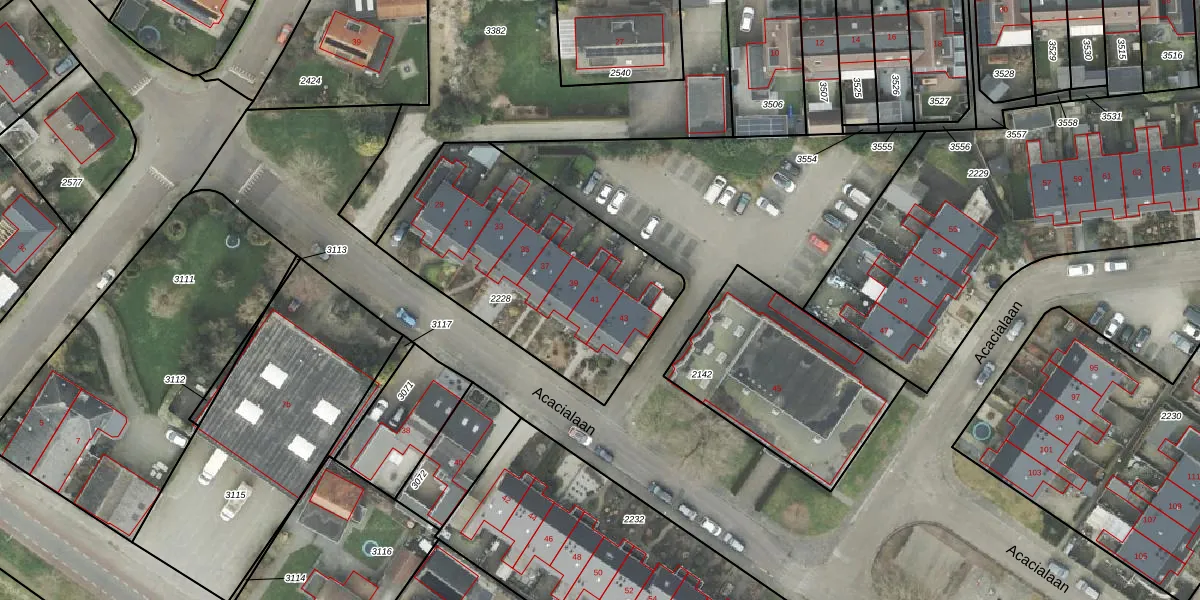 Het perceel waarop Acacialaan 41 staat heeft een oppervlakte van 1145 m². Dit is een zeer groot perceel. De perceeloppervlakte wordt geregistreerd door het Kadaster. Gedetailleerde informatie over de maten van dit perceel kunt u vinden in het rapport Kadastrale kaart met maatvoering van Acacialaan 41.