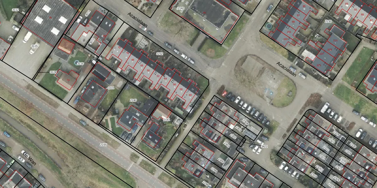 Het perceel waarop Acacialaan 60 staat heeft een oppervlakte van 1390 m². Dit is een zeer groot perceel. De perceeloppervlakte wordt geregistreerd door het Kadaster. Gedetailleerde informatie over de maten van dit perceel kunt u vinden in het rapport Kadastrale kaart met maatvoering van Acacialaan 60.