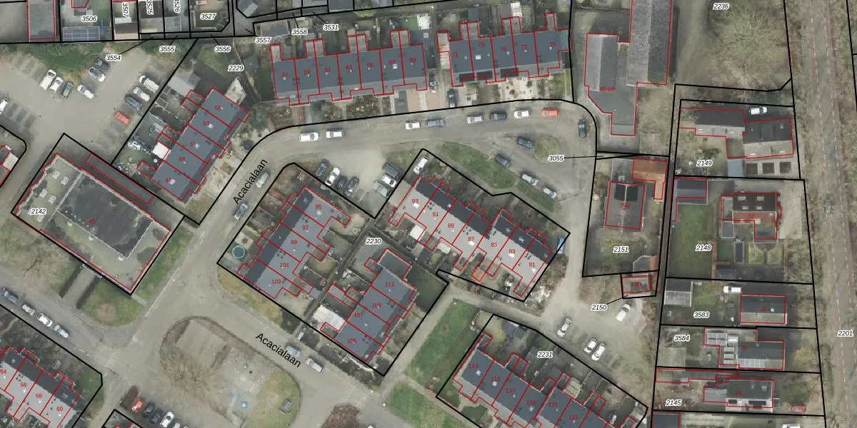 Het perceel waarop Acacialaan 91 staat heeft een oppervlakte van 2165 m². Dit is een zeer groot perceel. De perceeloppervlakte wordt geregistreerd door het Kadaster. Gedetailleerde informatie over de maten van dit perceel kunt u vinden in het rapport Kadastrale kaart met maatvoering van Acacialaan 91.