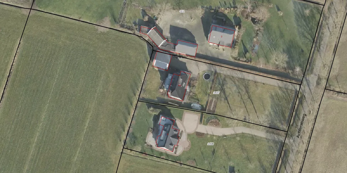 Het perceel waarop Achterseweg 4-1 staat heeft een oppervlakte van 2535 m². Dit is een zeer groot perceel. De perceeloppervlakte wordt geregistreerd door het Kadaster. Gedetailleerde informatie over de maten van dit perceel kunt u vinden in het rapport Kadastrale kaart met maatvoering van Achterseweg 4-1.