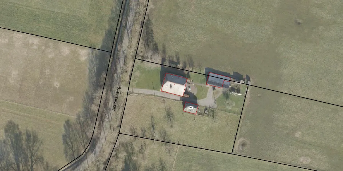 Achterseweg 7 is gelegen op kadastraal perceel HDE00P600. Deze kadastrale aanduiding is uniek en wordt gebruikt door het Kadaster om eigendomsrechten en andere zakelijke rechten vast te leggen. Het perceel maakt onderdeel uit van de kadastrale gemeente Heerde.
