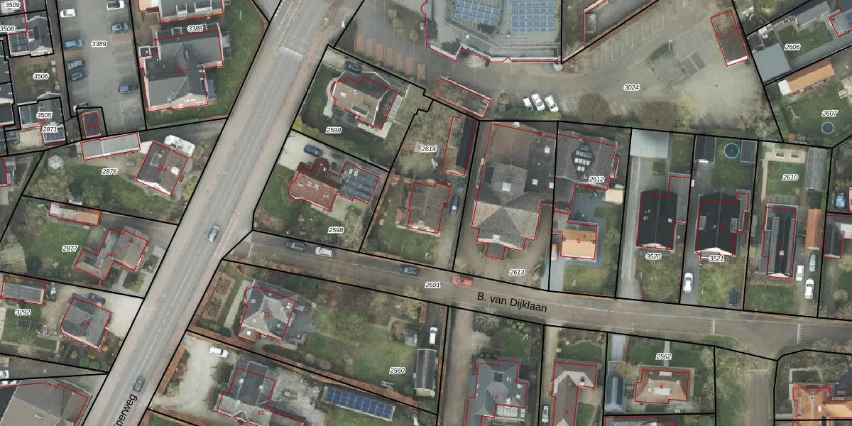 B. van Dijklaan 1 is gelegen op kadastraal perceel HDE00B2614. Deze kadastrale aanduiding is uniek en wordt gebruikt door het Kadaster om eigendomsrechten en andere zakelijke rechten vast te leggen. Het perceel maakt onderdeel uit van de kadastrale gemeente Heerde.