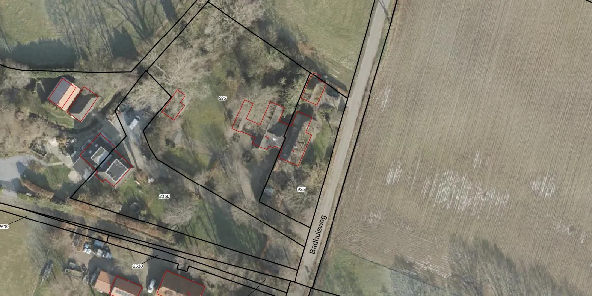 Badhuisweg 4 is gelegen op kadastraal perceel HDE00P925. Deze kadastrale aanduiding is uniek en wordt gebruikt door het Kadaster om eigendomsrechten en andere zakelijke rechten vast te leggen. Het perceel maakt onderdeel uit van de kadastrale gemeente Heerde.