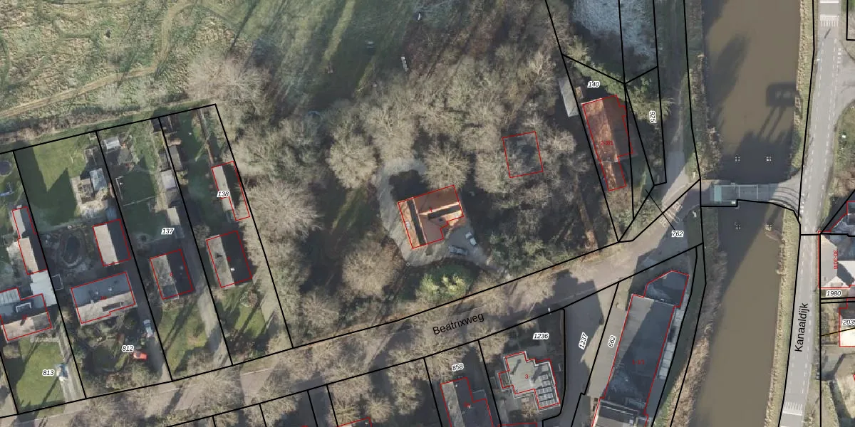 Het perceel waarop Beatrixweg 4 staat heeft een oppervlakte van 3,7 ha. Dit is een zeer groot perceel. De perceeloppervlakte wordt geregistreerd door het Kadaster. Gedetailleerde informatie over de maten van dit perceel kunt u vinden in het rapport Kadastrale kaart met maatvoering van Beatrixweg 4.