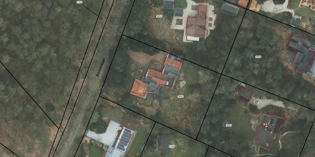Het perceel waarop Berkenlaan 25 staat heeft een oppervlakte van 2900 m². Dit is een zeer groot perceel. De perceeloppervlakte wordt geregistreerd door het Kadaster. Gedetailleerde informatie over de maten van dit perceel kunt u vinden in het rapport Kadastrale kaart met maatvoering van Berkenlaan 25.