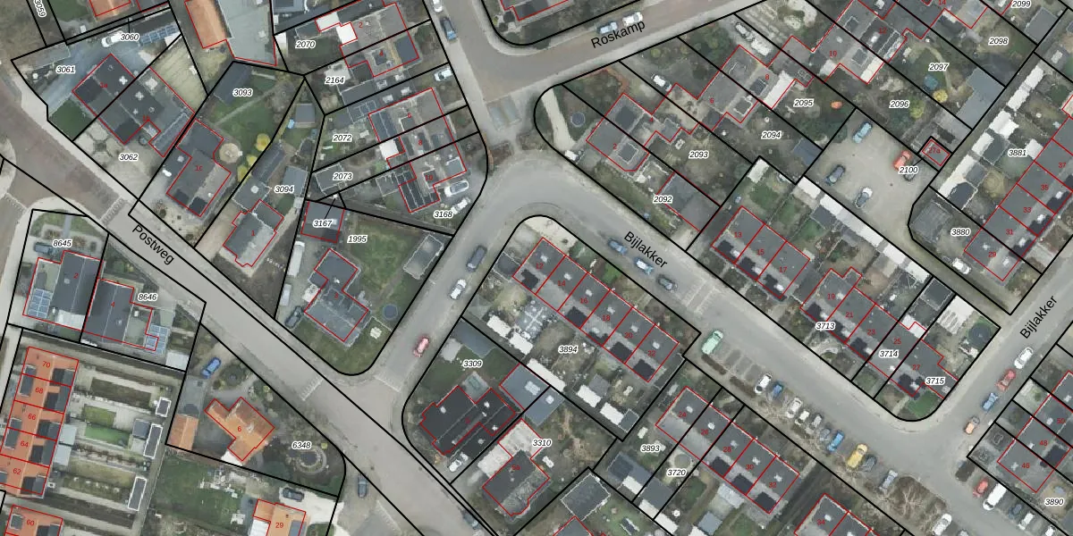 Het perceel waarop Bijlakker 12 staat heeft een oppervlakte van 970 m². Dit is een groot perceel. De perceeloppervlakte wordt geregistreerd door het Kadaster. Gedetailleerde informatie over de maten van dit perceel kunt u vinden in het rapport Kadastrale kaart met maatvoering van Bijlakker 12.