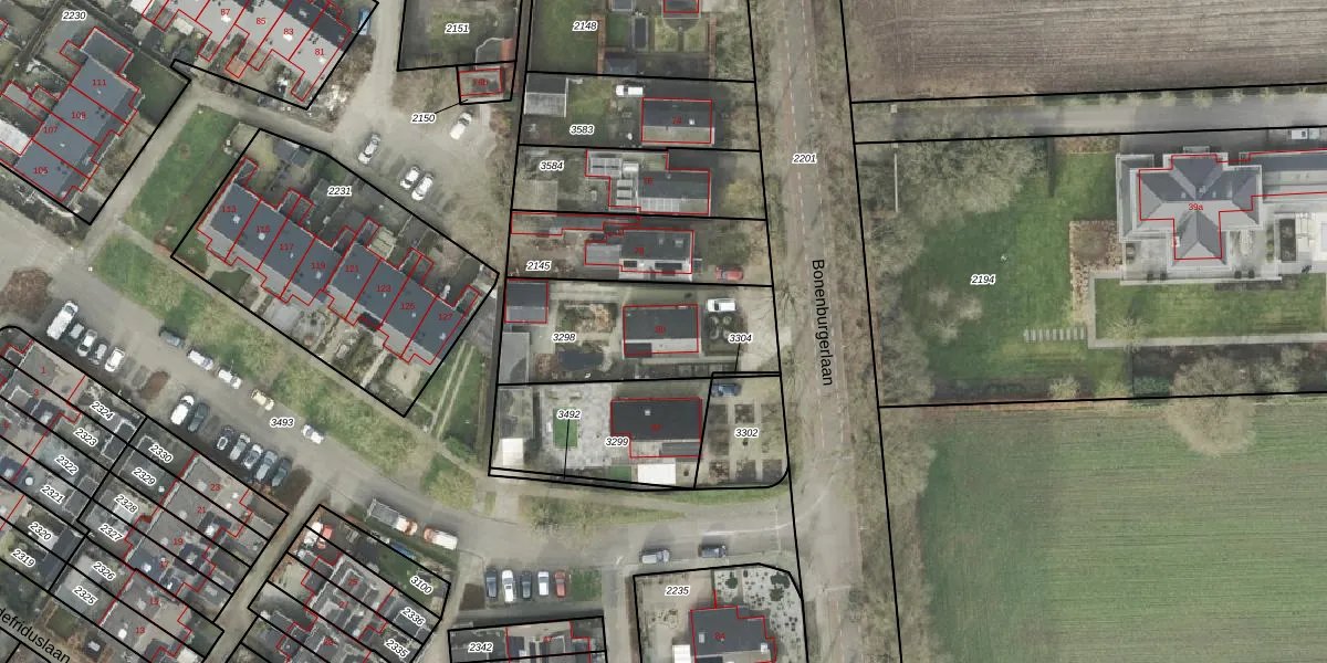 Bonenburgerlaan 80 is gelegen op kadastraal perceel HDE00B3298. Deze kadastrale aanduiding is uniek en wordt gebruikt door het Kadaster om eigendomsrechten en andere zakelijke rechten vast te leggen. Het perceel maakt onderdeel uit van de kadastrale gemeente Heerde.