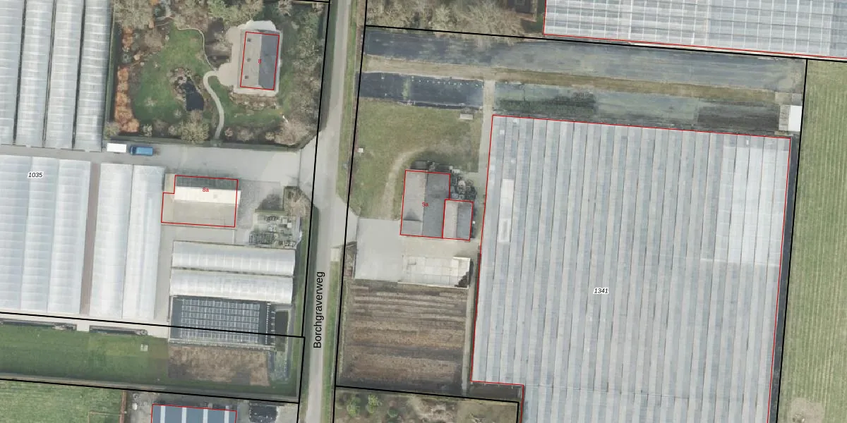 Het perceel waarop Borchgraverweg 5-a staat heeft een oppervlakte van 1,3 ha. Dit is een zeer groot perceel. De perceeloppervlakte wordt geregistreerd door het Kadaster. Gedetailleerde informatie over de maten van dit perceel kunt u vinden in het rapport Kadastrale kaart met maatvoering van Borchgraverweg 5-a.