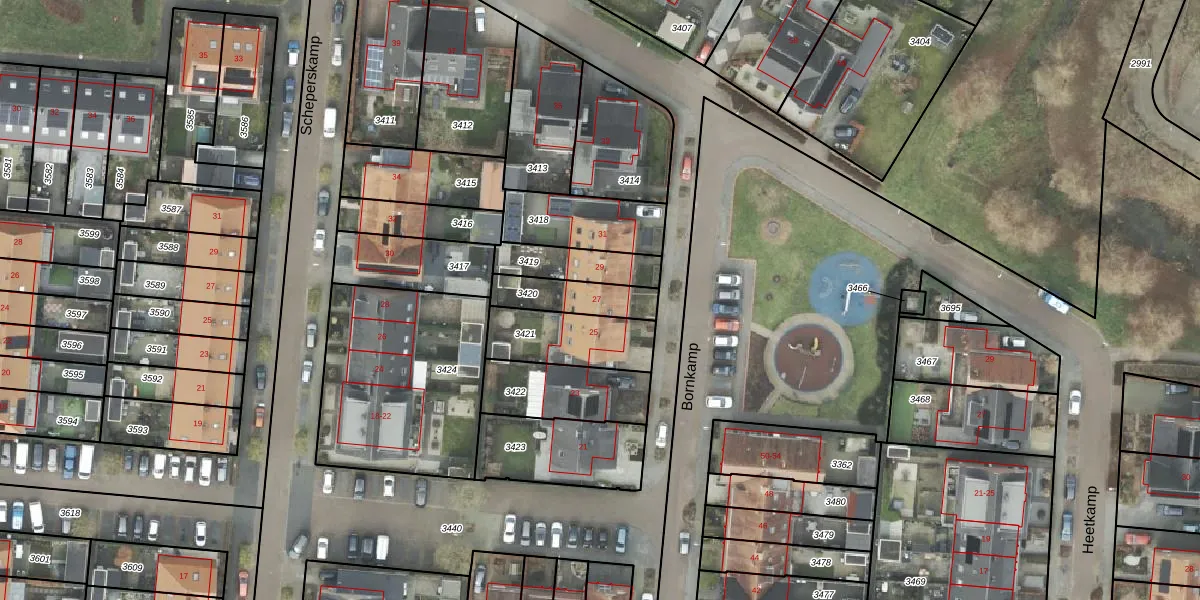 Bornkamp 27 is gelegen op kadastraal perceel HDE00H3420. Deze kadastrale aanduiding is uniek en wordt gebruikt door het Kadaster om eigendomsrechten en andere zakelijke rechten vast te leggen. Het perceel maakt onderdeel uit van de kadastrale gemeente Heerde.