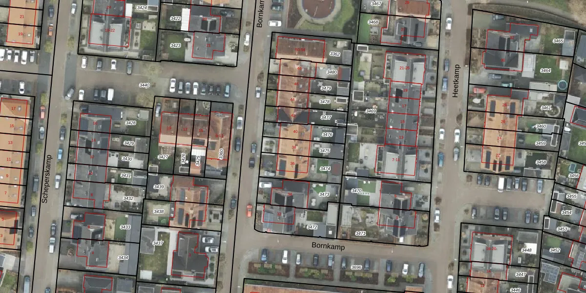 Bornkamp 38 is gelegen op kadastraal perceel HDE00H3475. Deze kadastrale aanduiding is uniek en wordt gebruikt door het Kadaster om eigendomsrechten en andere zakelijke rechten vast te leggen. Het perceel maakt onderdeel uit van de kadastrale gemeente Heerde.