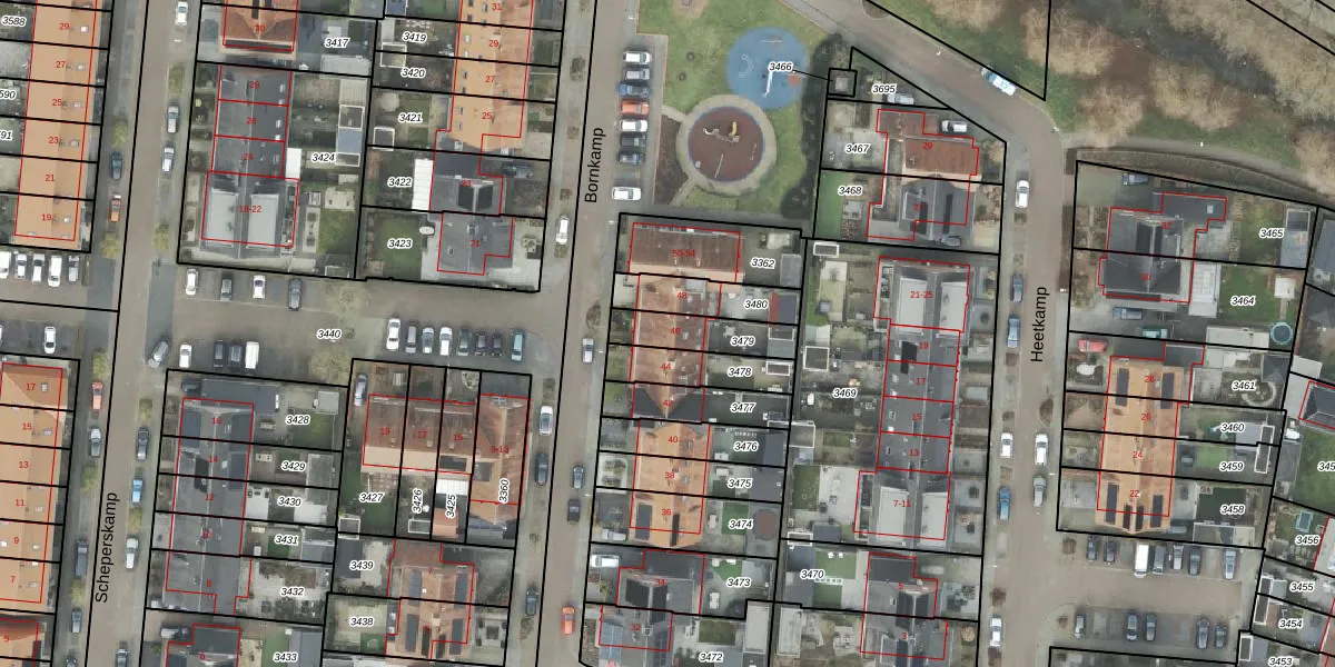 Bornkamp 46 is gelegen op kadastraal perceel HDE00H3479. Deze kadastrale aanduiding is uniek en wordt gebruikt door het Kadaster om eigendomsrechten en andere zakelijke rechten vast te leggen. Het perceel maakt onderdeel uit van de kadastrale gemeente Heerde.