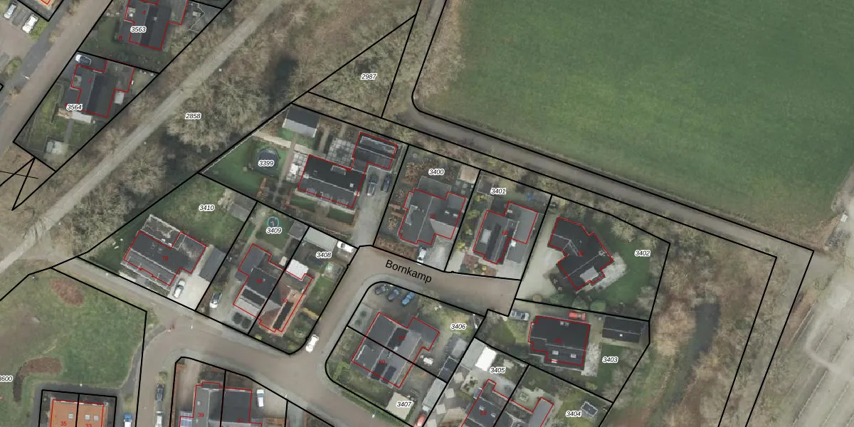 Bornkamp 70 is gelegen op kadastraal perceel HDE00H3400. Deze kadastrale aanduiding is uniek en wordt gebruikt door het Kadaster om eigendomsrechten en andere zakelijke rechten vast te leggen. Het perceel maakt onderdeel uit van de kadastrale gemeente Heerde.